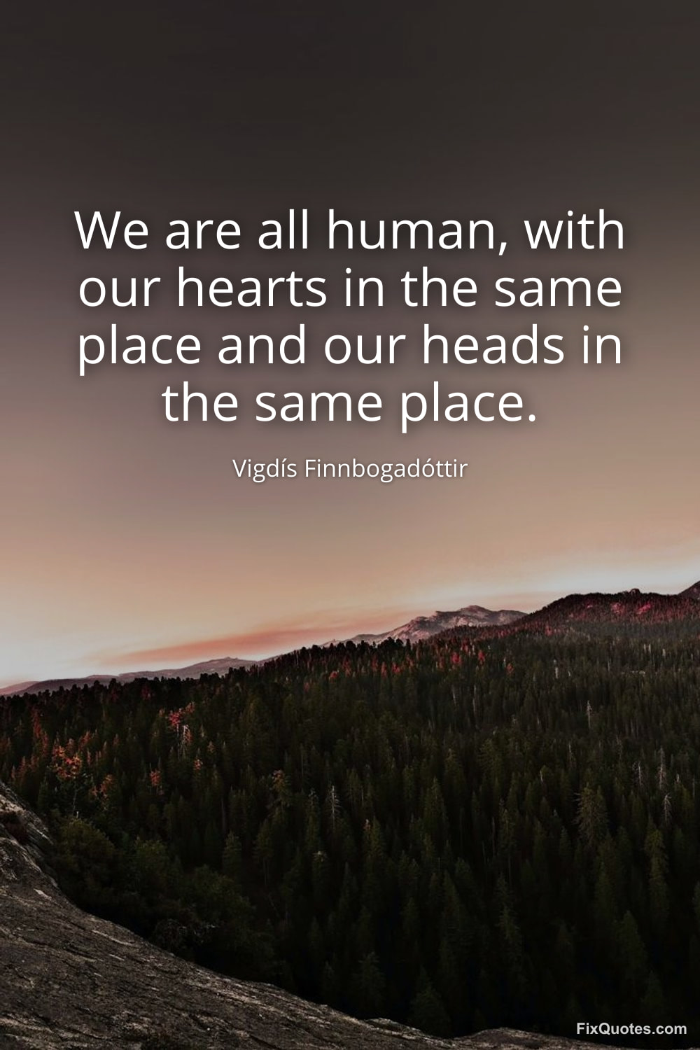 Finnbogadóttir, Vigdís. "We are all human, with our hearts in the same place and our heads in the same place." FixQuotes. February 15, 2026. https://fixquotes.com/quotes/we-are-all-human-with-our-hearts-in-the-same-185415/.
