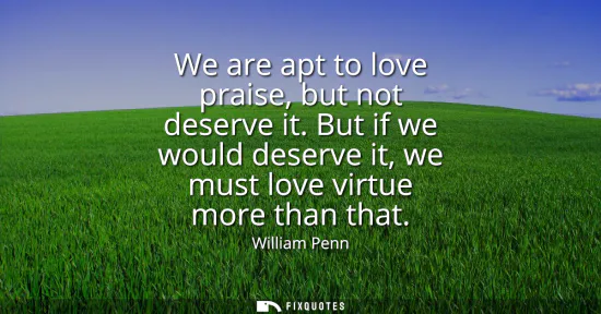 "We are apt to love praise, but not deserve it. But if we would deserve it, we must love virtue more than that"