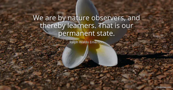 Emerson, Ralph Waldo. (2026, January 14). We are by nature observers, and thereby learners. That is our permanent state. FixQuotes. https://fixquotes.com/quotes/we-are-by-nature-observers-and-thereby-learners-28884/
