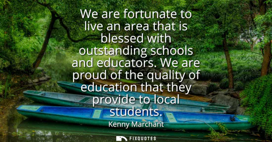 Gratitude and civic pride frame the statement, and the choice of words matters. Fortunate and blessed cast strong schools not as inevitable outcomes but as gifts a community must steward. The emphasis on outstanding schools and educators centers people and institutions together, suggesting that quality emerges from relationships, not just budgets or test scores. Pride in what local students receive turns education into a shared public identity: the schools are not merely service providers, they are a source of belonging and a measure of a towns health.