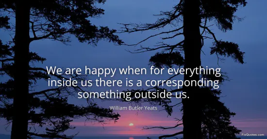 Yeats, William Butler. (2026, January 18). We are happy when for everything inside us there is a corresponding something outside us. FixQuotes. https://fixquotes.com/quotes/we-are-happy-when-for-everything-inside-us-there-11062/