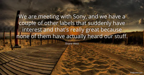 West, Shane. (2026, January 18). We are meeting with Sony, and we have a couple of other labels that suddenly have interest and that's really great because none of them have actually heard our stuff. FixQuotes. https://fixquotes.com/quotes/we-are-meeting-with-sony-and-we-have-a-couple-of-11316/