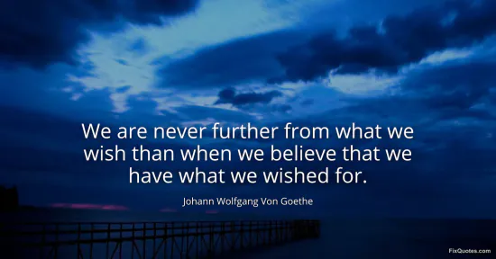 Goethe, Johann Wolfgang Von. (2026, January 17). We are never further from what we wish than when we believe that we have what we wished for. FixQuotes. https://fixquotes.com/quotes/we-are-never-further-from-what-we-wish-than-when-34503/