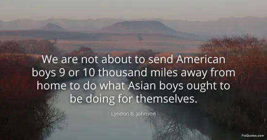 Johnson, Lyndon B. (2026, February 15). We are not about to send American boys 9 or 10 thousand miles away from home to do what Asian boys ought to be doing for themselves. FixQuotes. https://fixquotes.com/quotes/we-are-not-about-to-send-american-boys-9-or-10-33318/