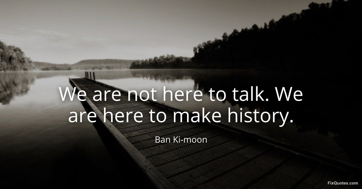 Ki-moon, Ban. "We are not here to talk. We are here to make history." FixQuotes. March 8, 2026. https://fixquotes.com/quotes/we-are-not-here-to-talk-we-are-here-to-make-185752/.