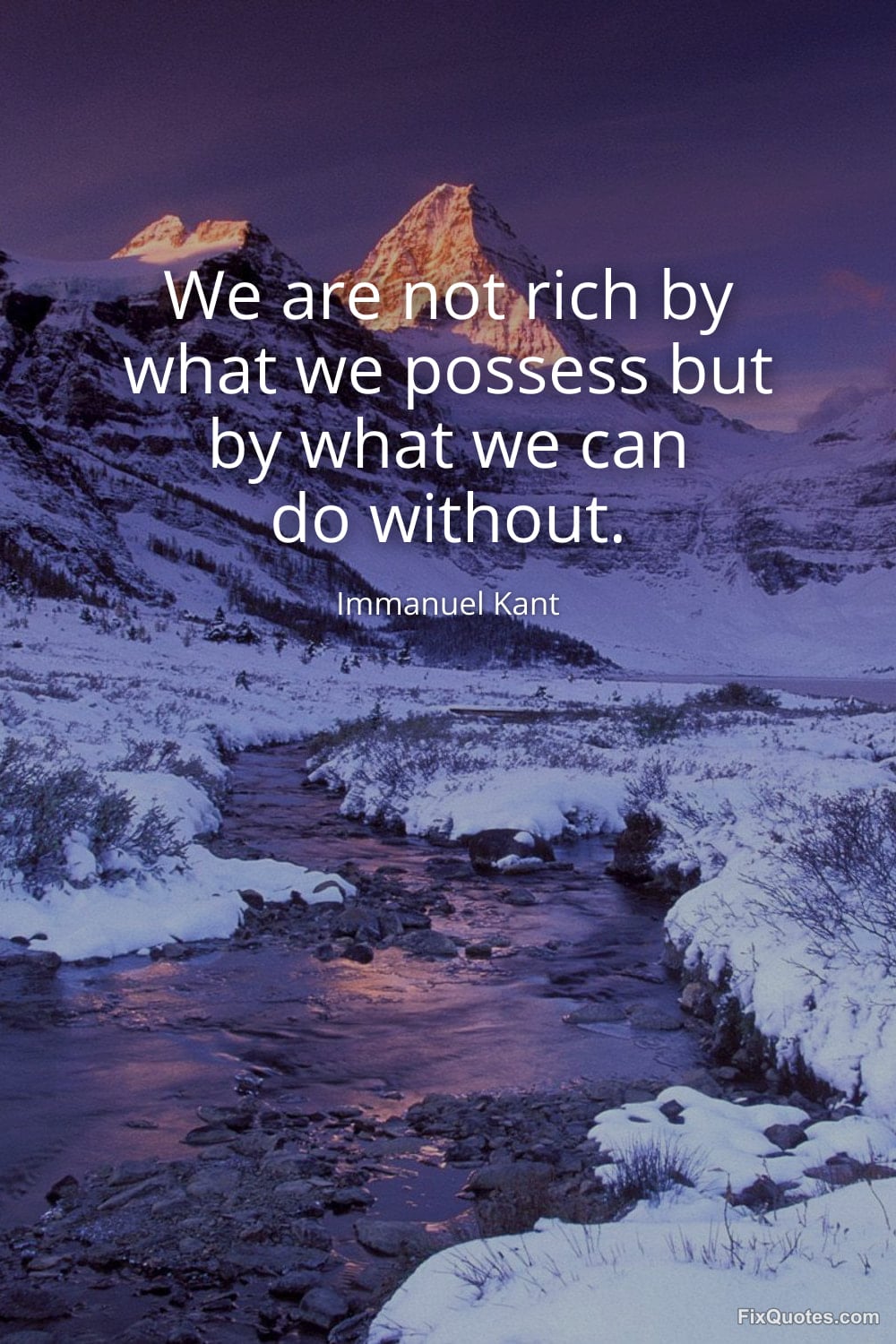 Kant, Immanuel. "We are not rich by what we possess but by what we can do without." FixQuotes. February 10, 2026. https://fixquotes.com/quotes/we-are-not-rich-by-what-we-possess-but-by-what-we-185053/.
