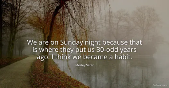 Safer, Morley. "We are on Sunday night because that is where they put us 30-odd years ago. I think we became a habit." FixQuotes. January 17, 2026. https://fixquotes.com/quotes/we-are-on-sunday-night-because-that-is-where-they-57153/.