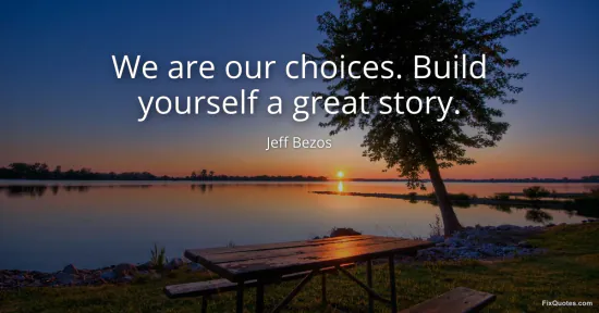 Bezos, Jeff. (2026, March 25). We are our choices. Build yourself a great story. FixQuotes. https://fixquotes.com/quotes/we-are-our-choices-build-yourself-a-great-story-186317/