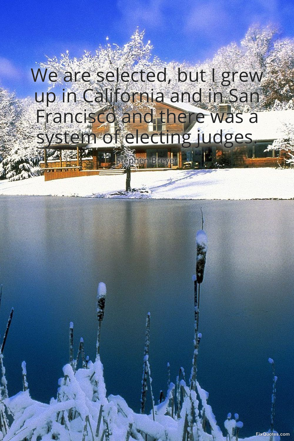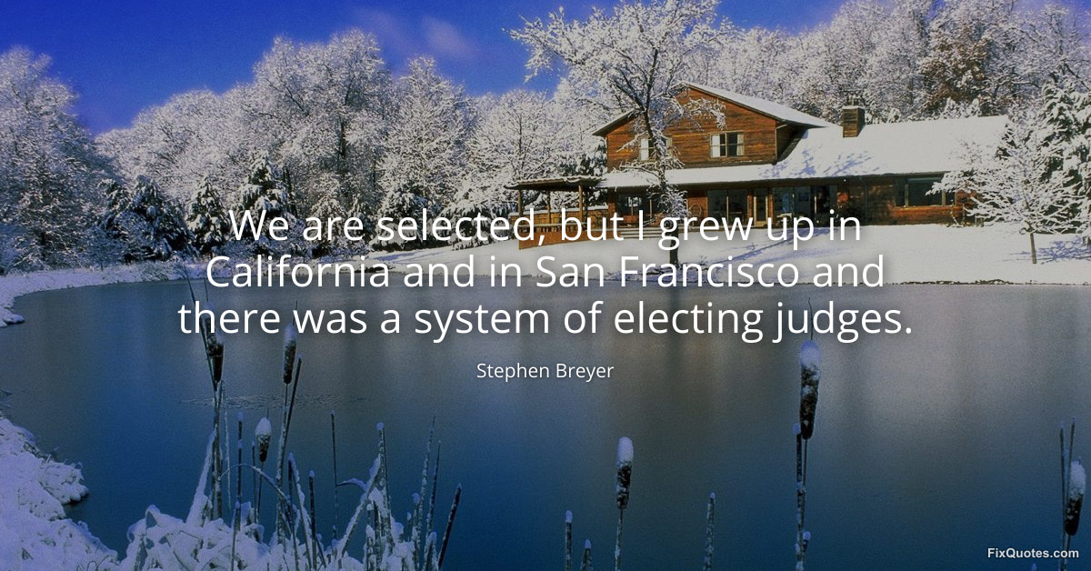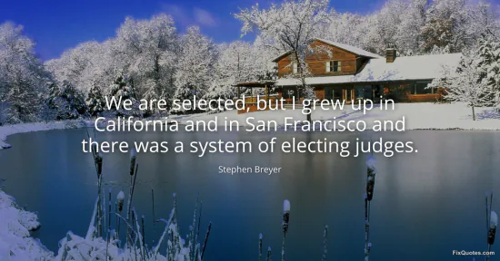 Breyer, Stephen. (2026, January 16). We are selected, but I grew up in California and in San Francisco and there was a system of electing judges. FixQuotes. https://fixquotes.com/quotes/we-are-selected-but-i-grew-up-in-california-and-103220/