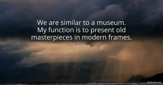Bing, Rudolf. (2026, January 16). We are similar to a museum. My function is to present old masterpieces in modern frames. FixQuotes. https://fixquotes.com/quotes/we-are-similar-to-a-museum-my-function-is-to-132729/