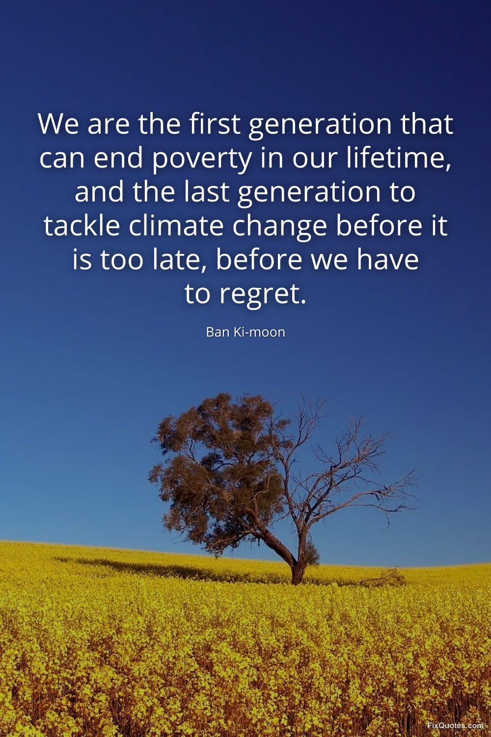 Ki-moon, Ban. (2026, March 8). We are the first generation that can end poverty in our lifetime, and the last generation to tackle climate change before it is too late, before we have to regret. FixQuotes. https://fixquotes.com/quotes/we-are-the-first-generation-that-can-end-poverty-185754/
