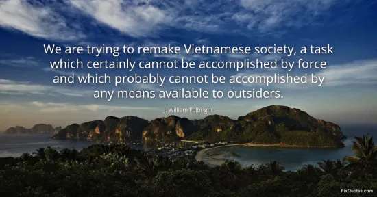 Fulbright, J. William. (2026, January 17). We are trying to remake Vietnamese society, a task which certainly cannot be accomplished by force and which probably cannot be accomplished by any means available to outsiders. FixQuotes. https://fixquotes.com/quotes/we-are-trying-to-remake-vietnamese-society-a-task-60600/