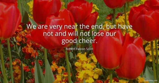 Scott, Robert Falcon. "We are very near the end, but have not and will not lose our good cheer." FixQuotes. January 18, 2026. https://fixquotes.com/quotes/we-are-very-near-the-end-but-have-not-and-will-18857/.