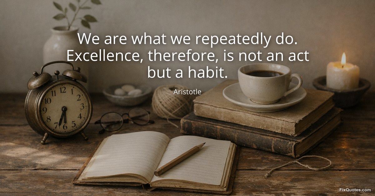 Aristotle. (2026, January 13). We are what we repeatedly do. Excellence, therefore, is not an act but a habit. FixQuotes. https://fixquotes.com/quotes/we-are-what-we-repeatedly-do-excellence-therefore-32543/