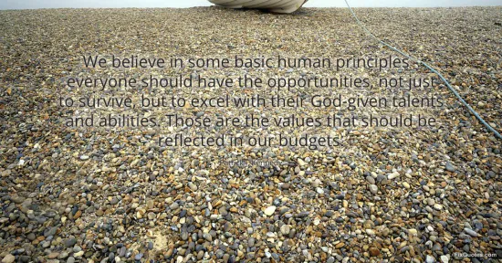 "We believe in some basic human principles - everyone should have the opportunities, not just to survive, but to excel with their God-given talents and abilities. Those are the values that should be reflected in our budgets." FixQuotes, 18 Feb. 2026, https://fixquotes.com/quotes/we-believe-in-some-basic-human-principles-65418/. Accessed 18 Feb. 2026.