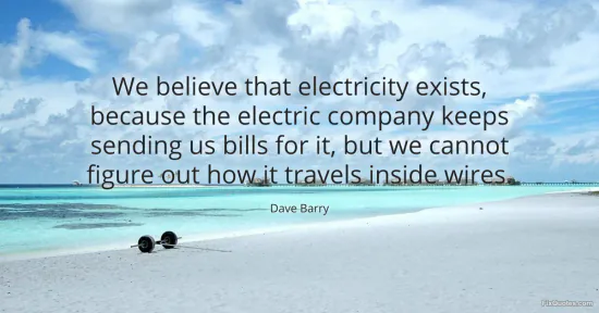 Barry, Dave. (2026, January 16). We believe that electricity exists, because the electric company keeps sending us bills for it, but we cannot figure out how it travels inside wires. FixQuotes. https://fixquotes.com/quotes/we-believe-that-electricity-exists-because-the-137427/