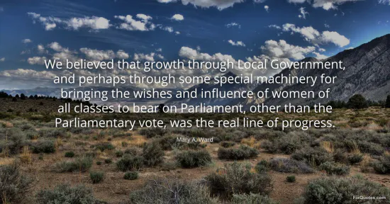 "We believed that growth through Local Government, and perhaps through some special machinery for bringing the wishes and influence of women of all classes to bear on Parliament, other than the Parliamentary vote, was the real line of progress"