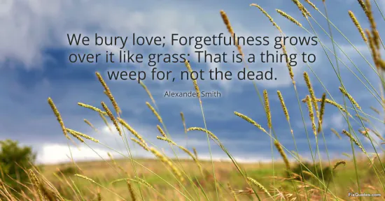 Smith, Alexander. (2026, January 15). We bury love; Forgetfulness grows over it like grass: That is a thing to weep for, not the dead. FixQuotes. https://fixquotes.com/quotes/we-bury-love-forgetfulness-grows-over-it-like-13063/