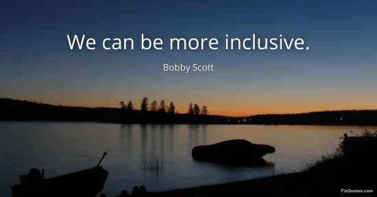 Scott, Bobby. "We can be more inclusive." FixQuotes. January 15, 2026. https://fixquotes.com/quotes/we-can-be-more-inclusive-144636/.