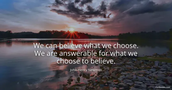 Newman, John Henry. "We can believe what we choose. We are answerable for what we choose to believe." FixQuotes. January 15, 2026. https://fixquotes.com/quotes/we-can-believe-what-we-choose-we-are-answerable-18064/.
