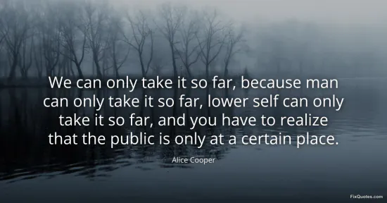Cooper, Alice. (2026, January 16). We can only take it so far, because man can only take it so far, lower self can only take it so far, and you have to realize that the public is only at a certain place. FixQuotes. https://fixquotes.com/quotes/we-can-only-take-it-so-far-because-man-can-only-138645/