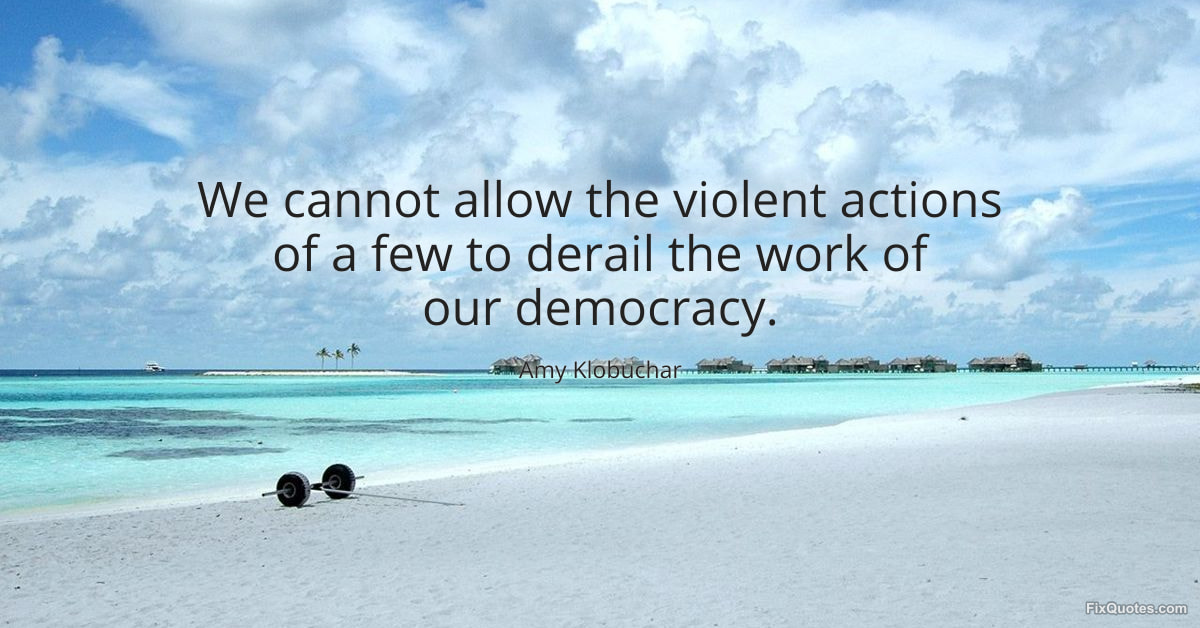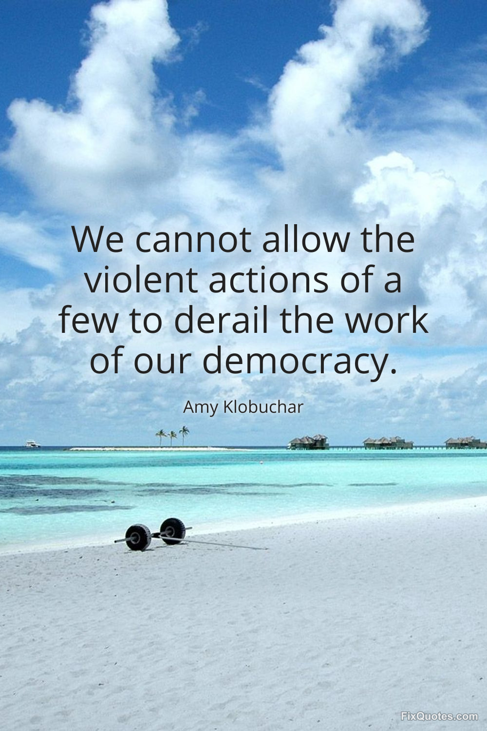 Klobuchar, Amy. (2026, January 30). We cannot allow the violent actions of a few to derail the work of our democracy. FixQuotes. https://fixquotes.com/quotes/we-cannot-allow-the-violent-actions-of-a-few-to-184776/