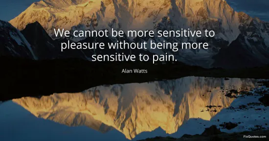 Watts, Alan. "We cannot be more sensitive to pleasure without being more sensitive to pain." FixQuotes. January 18, 2026. https://fixquotes.com/quotes/we-cannot-be-more-sensitive-to-pleasure-without-22817/.