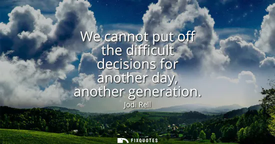 Jodi Rell, a moderate Republican who became governor of Connecticut after a crisis of public trust, voiced a principle of stewardship that reaches beyond the politics of a single state. The line insists on a break with the easy habit of postponement, the temptation to kick problems down the road so that the costs fall on people not yet at the table. It is a call to sobriety in an era of short attention spans and term-limited horizons.
