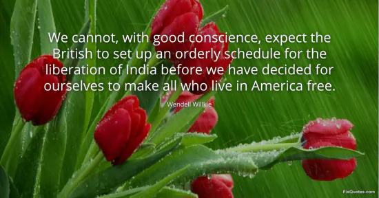Willkie, Wendell. "We cannot, with good conscience, expect the British to set up an orderly schedule for the liberation of India before we have decided for ourselves to make all who live in America free." FixQuotes. January 16, 2026. https://fixquotes.com/quotes/we-cannot-with-good-conscience-expect-the-british-122087/.