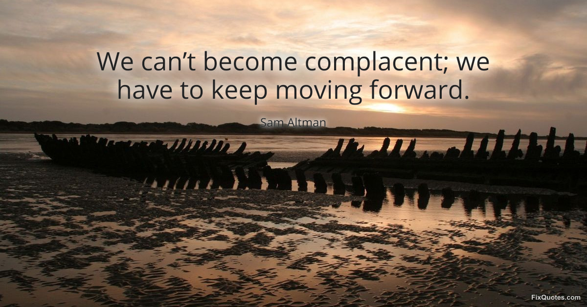 Altman, Sam. "We can’t become complacent; we have to keep moving forward." FixQuotes. January 25, 2026. https://fixquotes.com/quotes/we-cant-become-complacent-we-have-to-keep-moving-184269/.