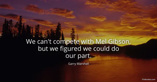 Marshall, Garry. "We can't compete with Mel Gibson, but we figured we could do our part." FixQuotes. January 16, 2026. https://fixquotes.com/quotes/we-cant-compete-with-mel-gibson-but-we-figured-we-112149/.