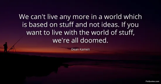 Kamen, Dean. "We can't live any more in a world which is based on stuff and not ideas. If you want to live with the world of stuff, we're all doomed." FixQuotes. January 18, 2026. https://fixquotes.com/quotes/we-cant-live-any-more-in-a-world-which-is-based-11496/.