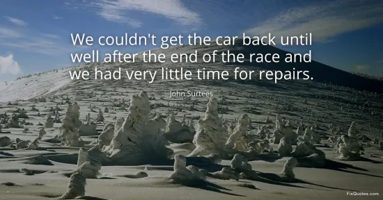 Surtees, John. "We couldn't get the car back until well after the end of the race and we had very little time for repairs." FixQuotes. January 16, 2026. https://fixquotes.com/quotes/we-couldnt-get-the-car-back-until-well-after-the-94136/.
