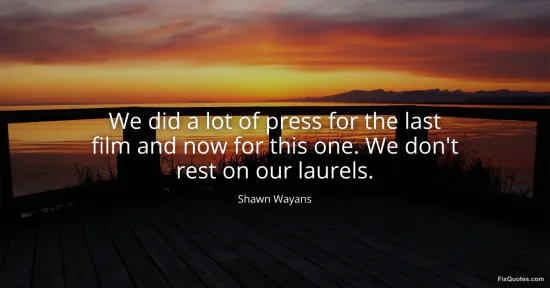 Wayans, Shawn. (2026, January 16). We did a lot of press for the last film and now for this one. We don't rest on our laurels. FixQuotes. https://fixquotes.com/quotes/we-did-a-lot-of-press-for-the-last-film-and-now-84272/