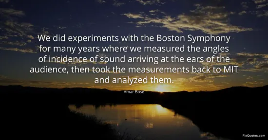 Bose, Amar. (2026, January 18). We did experiments with the Boston Symphony for many years where we measured the angles of incidence of sound arriving at the ears of the audience, then took the measurements back to MIT and analyzed them. FixQuotes. https://fixquotes.com/quotes/we-did-experiments-with-the-boston-symphony-for-9725/