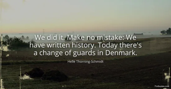 "We did it. Make no mistake: We have written history. Today there's a change of guards in Denmark." FixQuotes, 17 Jan. 2026, https://fixquotes.com/quotes/we-did-it-make-no-mistake-we-have-written-history-72872/. Accessed 12 Feb. 2026.