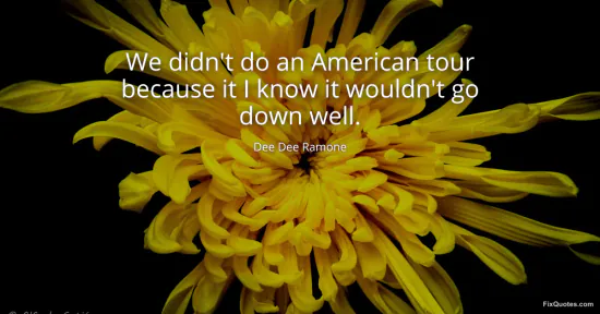 Ramone, Dee Dee. "We didn't do an American tour because it I know it wouldn't go down well." FixQuotes. January 16, 2026. https://fixquotes.com/quotes/we-didnt-do-an-american-tour-because-it-i-know-it-136762/.