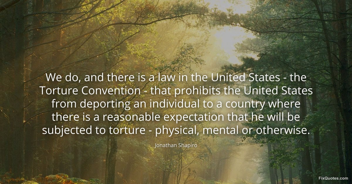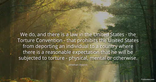 Shapiro, Jonathan. (2026, January 15). We do, and there is a law in the United States - the Torture Convention - that prohibits the United States from deporting an individual to a country where there is a reasonable expectation that he will be subjected to torture - physical, mental or otherwise. FixQuotes. https://fixquotes.com/quotes/we-do-and-there-is-a-law-in-the-united-states-144216/