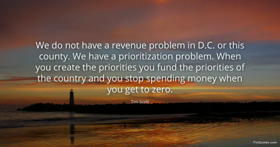 "We do not have a revenue problem in D.C. or this county. We have a prioritization problem. When you create the priorities you fund the priorities of the country and you stop spending money when you get to zero"