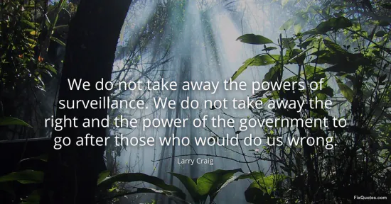 Craig, Larry. (2026, January 16). We do not take away the powers of surveillance. We do not take away the right and the power of the government to go after those who would do us wrong. FixQuotes. https://fixquotes.com/quotes/we-do-not-take-away-the-powers-of-surveillance-we-126556/