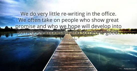 Laughlin, James. (2026, January 17). We do very little re-writing in the office. We often take on people who show great promise and who we hope will develop into somebody important and someone good. FixQuotes. https://fixquotes.com/quotes/we-do-very-little-re-writing-in-the-office-we-51739/