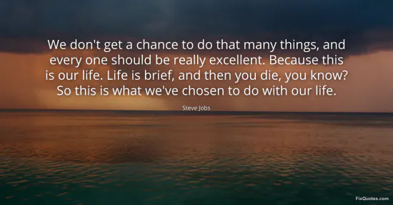 Jobs, Steve. "We don't get a chance to do that many things, and every one should be really excellent. Because this is our life. Life is brief, and then you die, you know? So this is what we've chosen to do with our life." FixQuotes. January 17, 2026. https://fixquotes.com/quotes/we-dont-get-a-chance-to-do-that-many-things-and-27257/.