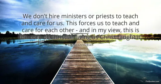 Christensen, Clayton. "We don't hire ministers or priests to teach and care for us. This forces us to teach and care for each other - and in my view, this is the core of Christian living as Christ taught it." FixQuotes. January 17, 2026. https://fixquotes.com/quotes/we-dont-hire-ministers-or-priests-to-teach-and-66352/.