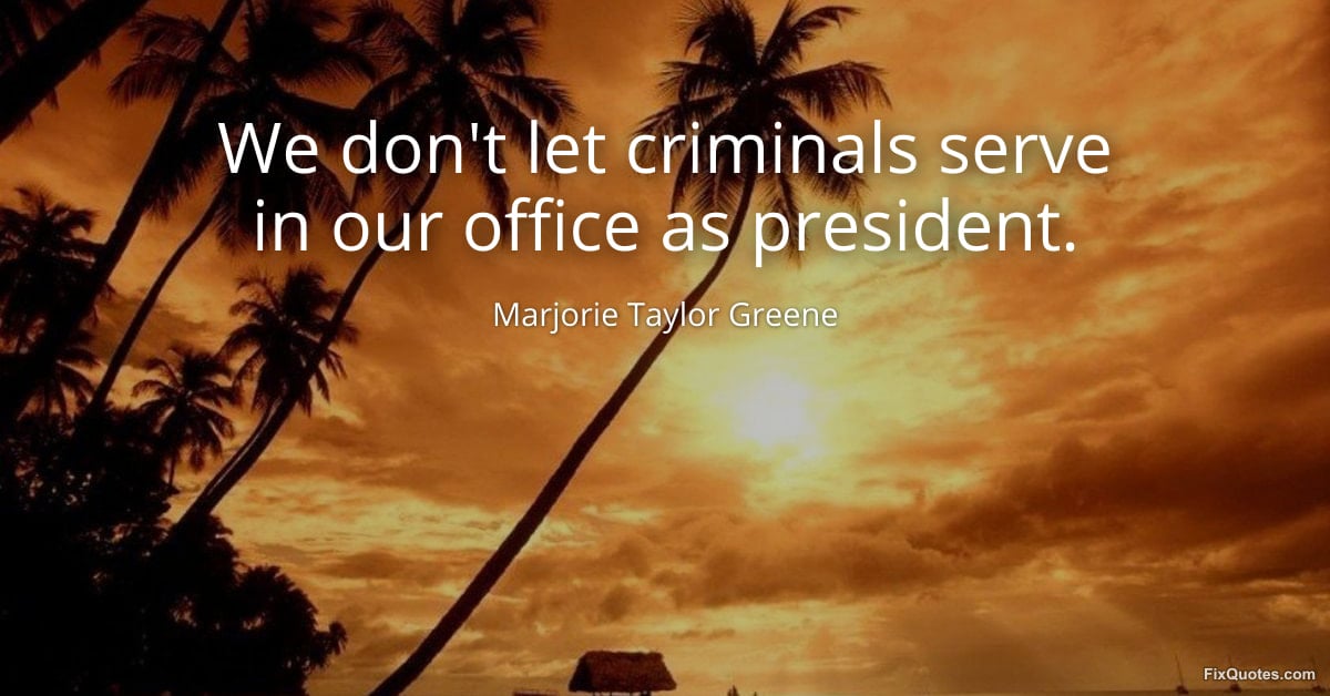 Greene, Marjorie Taylor. (2026, January 15). We don't let criminals serve in our office as president. FixQuotes. https://fixquotes.com/quotes/we-dont-let-criminals-serve-in-our-office-as-173537/