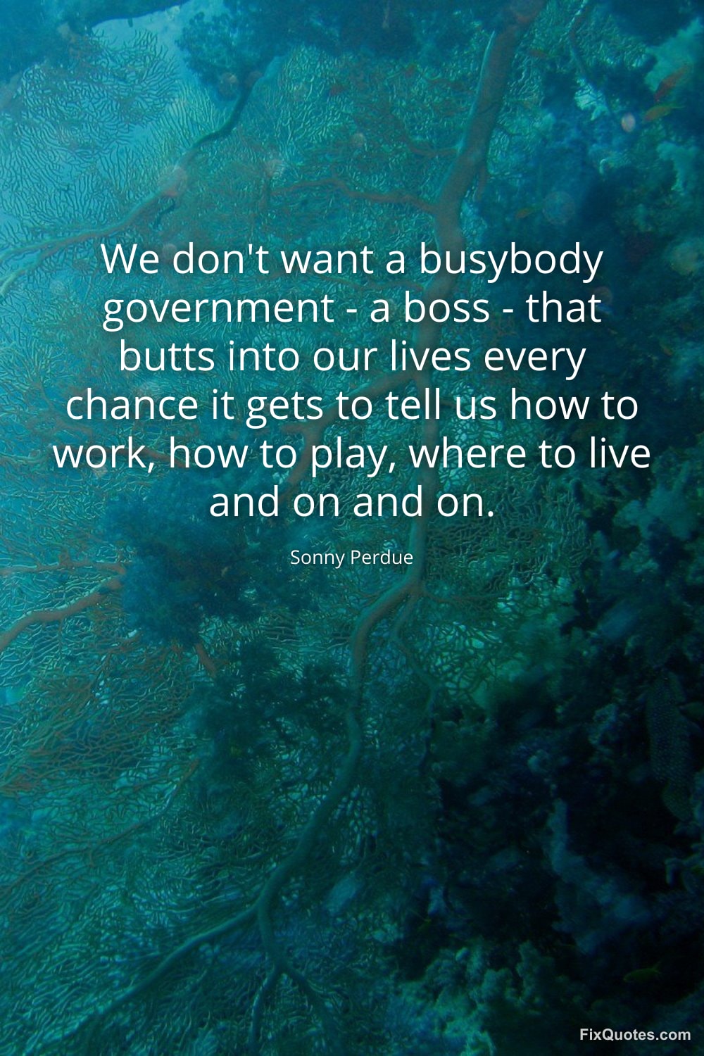 Perdue, Sonny. (2026, January 16). We don't want a busybody government - a boss - that butts into our lives every chance it gets to tell us how to work, how to play, where to live and on and on. FixQuotes. https://fixquotes.com/quotes/we-dont-want-a-busybody-government-a-boss-83460/