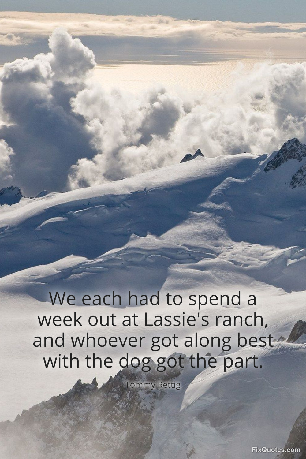 Rettig, Tommy. "We each had to spend a week out at Lassie's ranch, and whoever got along best with the dog got the part." FixQuotes. January 15, 2026. https://fixquotes.com/quotes/we-each-had-to-spend-a-week-out-at-lassies-ranch-173619/.