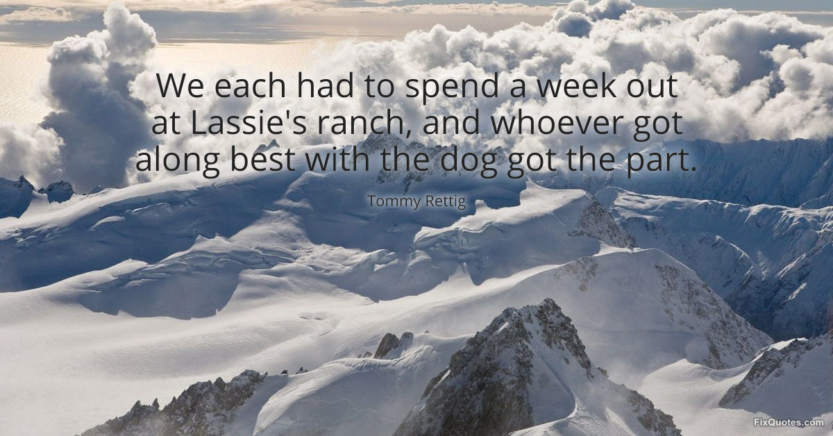 Rettig, Tommy. (2026, January 15). We each had to spend a week out at Lassie's ranch, and whoever got along best with the dog got the part. FixQuotes. https://fixquotes.com/quotes/we-each-had-to-spend-a-week-out-at-lassies-ranch-173619/