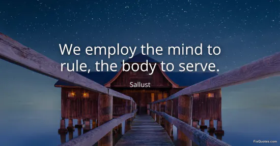 Sallust. "We employ the mind to rule, the body to serve." FixQuotes. January 15, 2026. https://fixquotes.com/quotes/we-employ-the-mind-to-rule-the-body-to-serve-83923/.