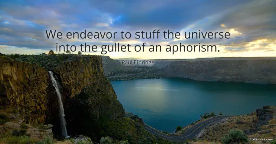 Eldridge, Paul. "We endeavor to stuff the universe into the gullet of an aphorism." FixQuotes. January 16, 2026. https://fixquotes.com/quotes/we-endeavor-to-stuff-the-universe-into-the-gullet-86816/.