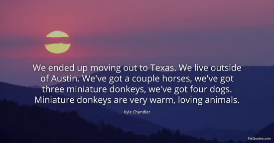 Chandler, Kyle. (2026, January 16). We ended up moving out to Texas. We live outside of Austin. We've got a couple horses, we've got three miniature donkeys, we've got four dogs. Miniature donkeys are very warm, loving animals. FixQuotes. https://fixquotes.com/quotes/we-ended-up-moving-out-to-texas-we-live-outside-87072/